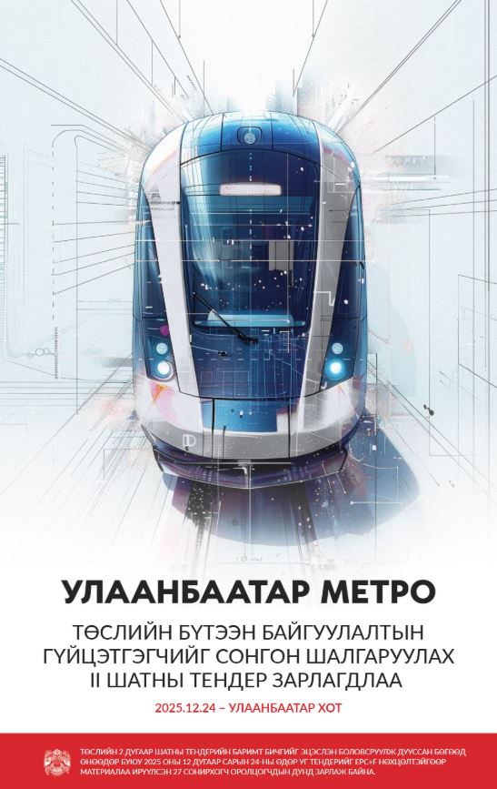 Ил тод Улаанбаатар хотын цаг үеийн мэдээ Улаанбаатар метроны бүтээн байгуулалтын гүйцэтгэгчийг сонгон шалгаруулах II шатны тендерийг зарлалаа Улаанбаатар лифт НӨҮГ December 24, 2025 0 Улаанбаатар хотhttps://ulaanbaatar.mn/news/22199 More Stories Ил тод Сургалт Сургалтад хамрагдлаа Улаанбаатар лифт НӨҮГ April 13, 2026 Ил тод Сургалт Сургалтад хамрагдлаа Улаанбаатар лифт НӨҮГ April 10, 2026 Ёс зүйн мэдээ Ил тод Байгууллагын ёс зүйн дүрэм Улаанбаатар лифт НӨҮГ March 30, 2026 0